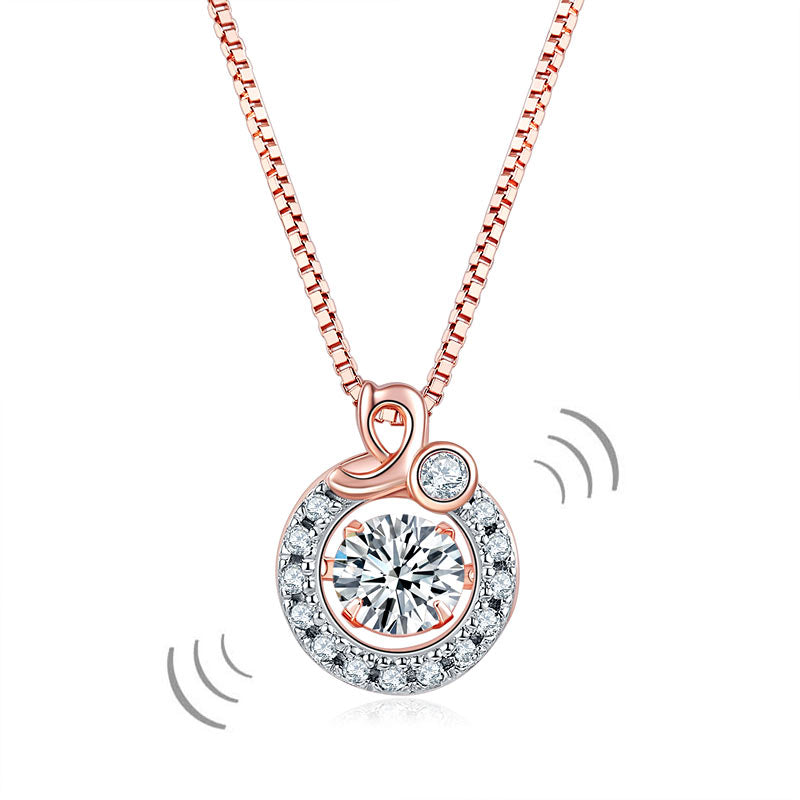 Dancing Stone Pendant Necklace Solid 925 Sterling Silver Rose Gold Plated