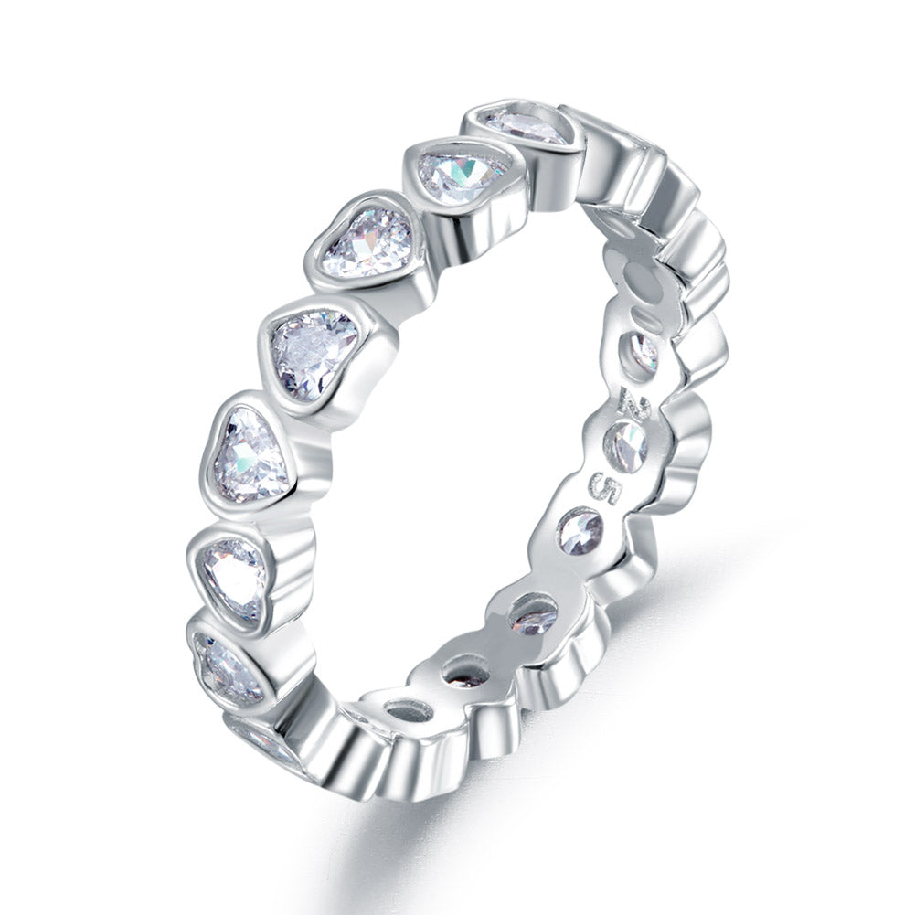 Eternity Wedding Band Heart Solid 925 Sterling Silver Stacking Ring
