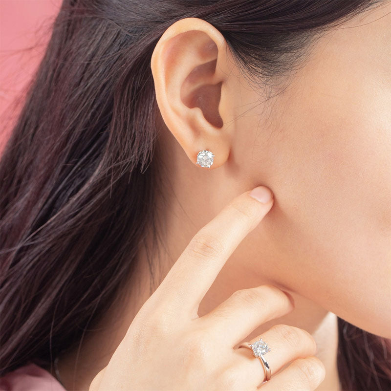 1 Carat Moissanite Diamond 4 Claws Stud Earrings 925 Sterling Silver