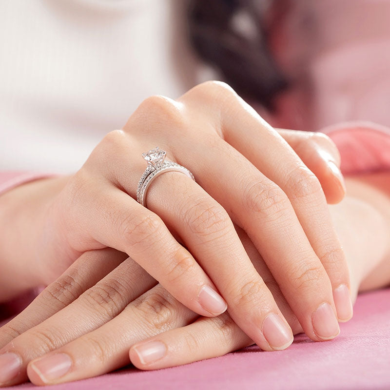 1 Carat Moissanite Diamond Ring Set (1 pcs / 2 pcs) 925 Sterling Silver