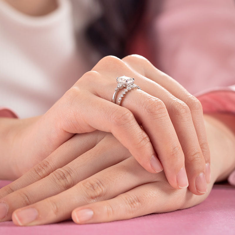 2 Carat Emerald Cut Moissanite Diamond Ring Set ( 2 pcs) 925 Sterling Silver