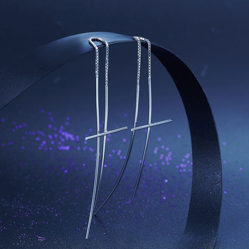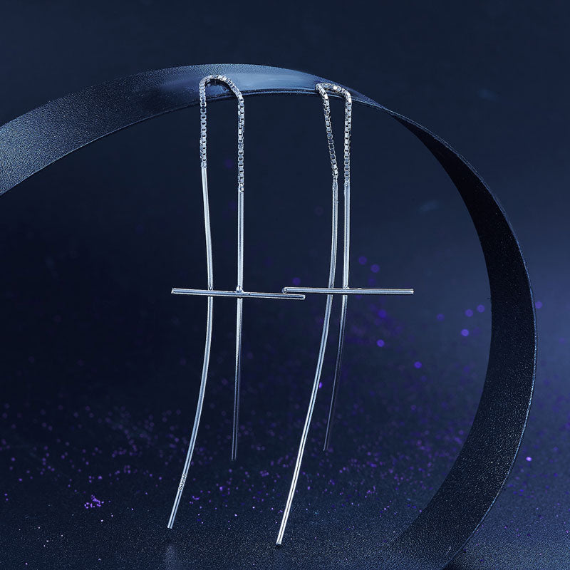Dangle Drop Cross 925 Sterling Silver Earrings Long Elegant