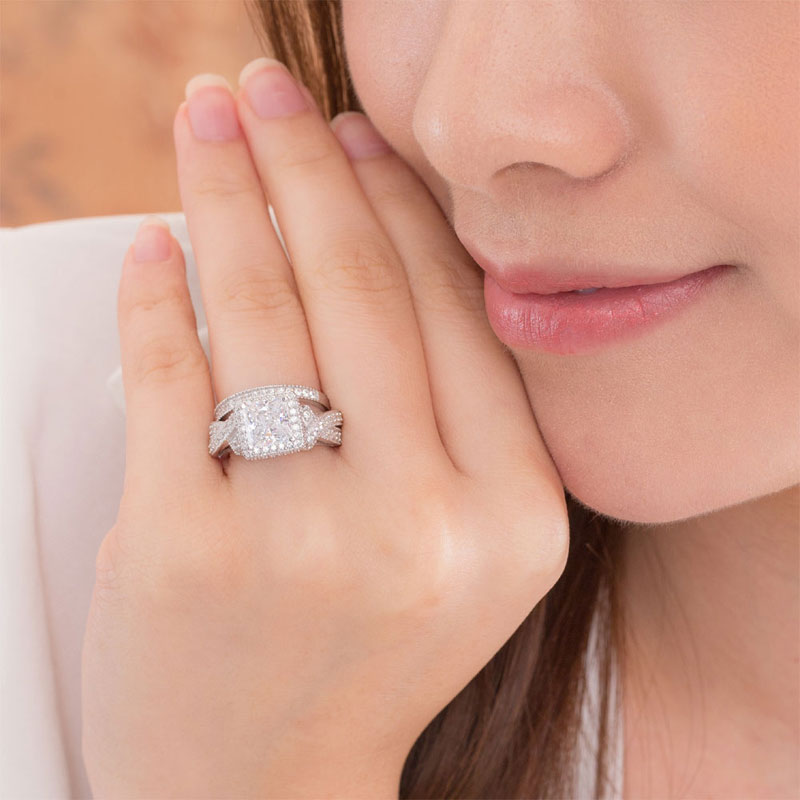 Solid 925 Sterling Silver Wedding Anniversary Engagement Ring Set Vintage Style