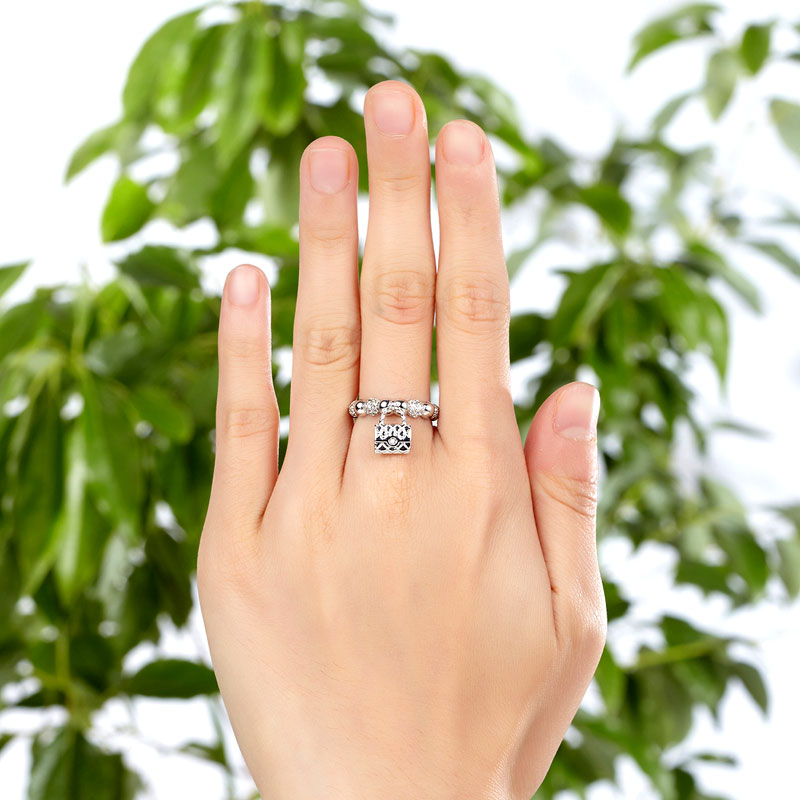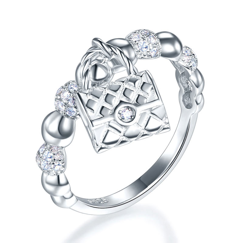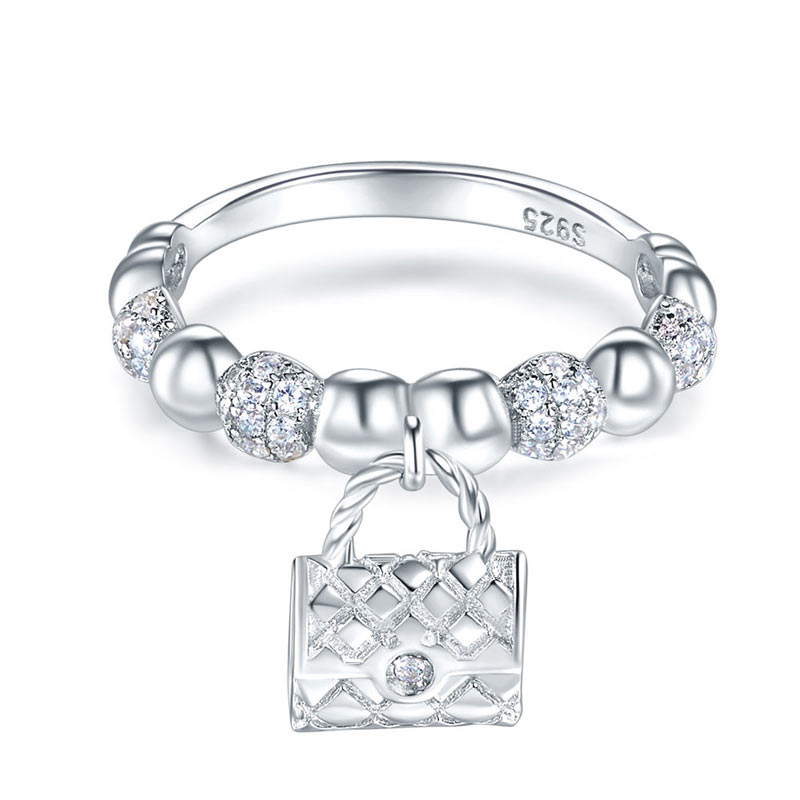 Solid 925 Sterling Silver Band Ring Dangle Purse New Style