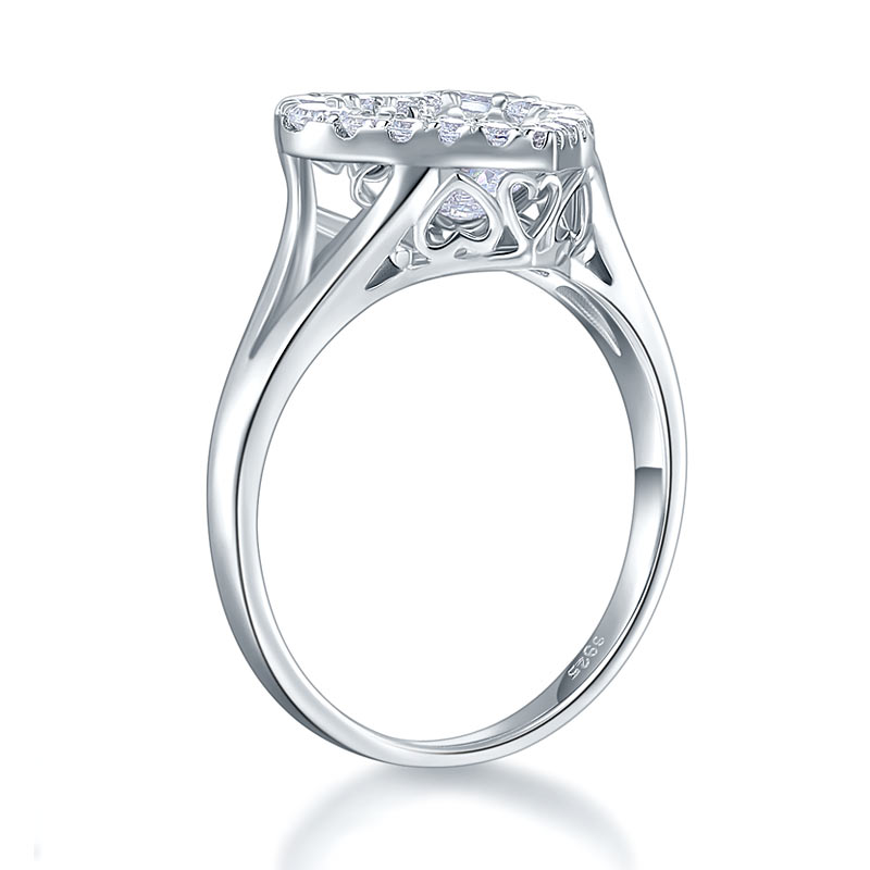 Dancing Stone Heart Solid 925 Sterling Silver Ring Fashion Wedding Ring