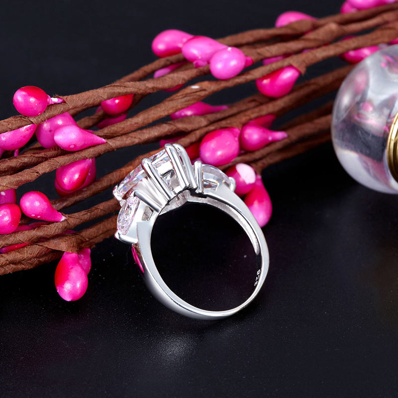 Pear Cut 4 Carat Solid 925 Sterling Silver Ring Three-Stone ring